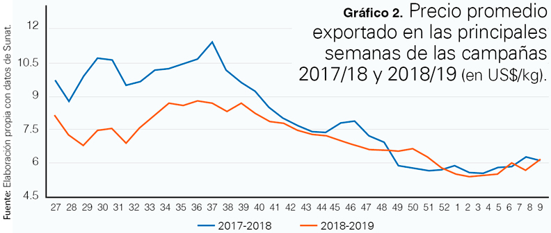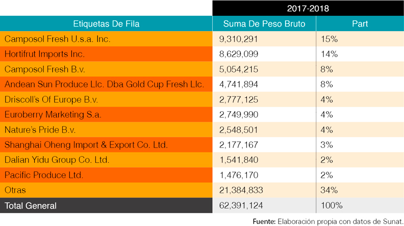 En relación a los volúmenes exportados, Athos, produjo la pasada campaña 1.5 millones de kilos, el que se incrementará en diez veces cuando las 600 ha estén en plena producción. Su principal mercado es China. Allí es donde apuntan desde que ese país se abriese a los envíos desde Perú en 2016. Ese primer año no exportaron a Asia debido a que los volúmenes fueron reducidos, por lo que gran parte de lo producido se envió a EE UU y Europa.