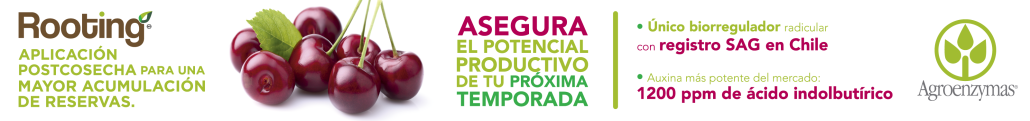 Carlos José Tapia T., Ingeniero Agrónomo M. Sc. Especialista en producción de cerezas. Director técnico de Avium SpA. Parte muy importante del proceso de desarrollo anual del cerezo dulce (Prunus avium L.) y factor importante de su potencial productivo es la integridad de la planta en el extenso periodo de poscosecha en cerezos que presenta la especie, coincidente con el periodo de diferenciación floral y con el momento más importante de acumulación de reservas carbonadas y nitrogenadas (Fig. 1). Es en este momento preciso de la temporada, en el que muchos manejos están al margen de la real necesidad, que es muy importante mantener activo el proceso de intercambio gaseoso en relación directa con la atmósfera, entendida como flujo hídrico desde el suelo vía xilema hasta la atmósfera mediante las hojas sin impedimento ni resistencia de los estomas para expulsar agua, consiguiendo de esta manera captar CO2 como base principal de la fertilización carbonada y generación de azúcares de reserva mediante el proceso fotosintético (Fig. 2). Cualquier anomalía desde el punto de vista del stress en este periodo va directamente en desmedro de la acumulación de reservas y de forma paralela a la formación y al desarrollo de los primordios florales en los centros frutales que participarán en la producción de la siguiente temporada. De lo anterior, se hace imponderable evitar el stress para no interrumpir estos procesos fundamentales en la producción. El stress de poscosecha puede darse entre otros factores por un efecto abiótico, principalmente por déficit hídrico y/o exceso de temperatura, y biótico causado por una plaga o enfermedad. El stress abiótico se produce principalmente porque plantas, generalmente de menor desarrollo vegetativo y/o con un riego deficitario, no tienen la capacidad de hacer intercambio gaseoso continuo a la atmósfera produciendo cierre estomático, no captando CO2 para la generación de azúcares y mal formando primordios de flores en los centros frutales, generando perdida de fertilidad y malformaciones en frutos, considerando que el periodo de inducción floral (IF) comienza aproximadamente 70 días después de plena flor (DDPF) y el periodo de diferenciación floral (DF) se inicia aproximadamente 100 DDPF, siendo ambos procesos muy dependientes de una estabilidad hídrica y térmica en la planta en esos momentos de mayor demanda atmosférica. Ahora, el soporte principal en función de mantener un sistema en constante equilibrio tiene mucho que ver con cómo se desarrolla y se recupera el sistema de raíces en poscosecha. Se reconoce que este proceso se extiende entre aproximadamente 90 y 120 DDPF (Fig. 1). Cuando se trata de huertos en plena producción y sobretodo con un alto potencial productivo reconocido en la temporada, este proceso necesariamente debe ser apoyado con la incorporación de agentes que potencien la recuperación de la raíz, ya que será el soporte de gran parte de las reservas carbonadas y nitrogenadas del inicio de la temporada, ya que en primavera se reconoce desarrollo inicial de raíces no antes de 25-30 DDPF (Fig. 1), generalmente respondiendo cuando la temperatura de suelo supere los 15ºC. Los agentes específicos que ayudan en este proceso puntual se reconocen como enraizantes; que necesariamente en su composición deben contener reguladores de crecimientos, principalmente auxinas (Ácido indolbutírico) quienes proporcionan una señal directa para potenciar aún más la creación de nuevas raíces y del desarrollo sostenido de éstas. En investigaciones realizadas en Chile en las últimas temporadas se reconoce que la utilización de este tipo de compuestos en esta época, potencia el desarrollo de las raíces y generación de nuevos puntos de crecimiento. Si bien la acumulación de reservas carbonadas (Almidón) y nitrogenadas no siempre representa un cambio en su concentración, ya con tener mayor desarrollo del sistema radical, medido en peso, si se puede afirmar que existe una mayor cantidad de este tipo de reservas en las plantas. De todas maneras cabe recordar que todos estos procesos, no solo la recuperación del sistema de raíces, si no también de la estabilidad en cuanto a flujo hídrico y la prevención de stress, están firmemente ligados a la administración y programación del riego en esta etapa del desarrollo del cultivo. Referencias C. Bonomelli, C. Bonilla, E. Acuña, and P. Artacho. 2012. Seasonal pattern of root growth in relation to shoot phenology and soil temperature in sweet cherry trees (Prunus avium): A preliminary study in central Chile. Cien. Inv. Agr. 39(1). Taiz, L. & Zeiger, E. 3rd. Edition, 2006. Plant Physiology, Water Balance of Plants. Sinauer Associates. Sunderland, Ma., USA. Tapia C. 2017 utilización, modo de acción y experiencias de distintos reguladores de crecimiento que influyen en la producción de cerezas. Revista Red Agrícola, edición Agosto 2017. pp. 30-31. Santiago, Chile. Manipulación Hormonal del Sistema Radicular Rooting – Primer Biorregulador Radicular del Mundo Félix René Acosta B. Ingeniero agrónomo, Director Agroenzymas Sudamérica 1. LA MANIPULACIÓN HORMONAL. LAS 4 REGLAS SOBRE EL USO DE BIORREGULADORES A través de la evolución tecnológica de la agricultura, uno de los grandes pasos hacia la productividad y la eficiencia del cultivo fue el descubrimiento y el uso de compuestos biorreguladores, conocidos como hormonas vegetales. Conforme ha ido avanzando el conocimiento de la humanidad y el acceso a dicha información, el uso de biorreguladores en la agricultura se ha ido estableciendo como una práctica agronómica común, debido a que los efectos son muy puntuales y específicos, tales como el uso de madurantes, ácido giberélico, citoquininas, que encontraron un nicho de manipulación, generalmente enfocado en el fruto o en el desarrollo vegetativo. Para una eficiente biorregulación, es muy importante tomar en cuenta las 4 reglas de la misma: 1.