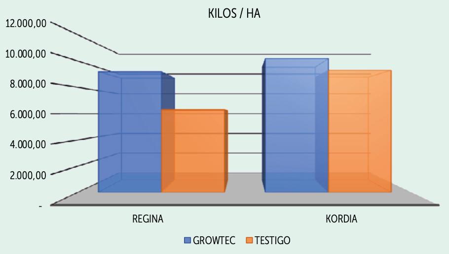 En el presente ensayo se incrementó la producción de la variedad Regina en 3.000 kilos/ha y en el caso de Kordia se incrementó 1.000 kilos/ha.