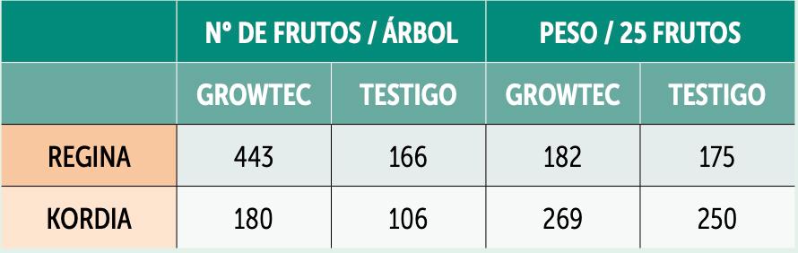 En ambas variedades se incrementó drásticamente el número de frutos/árbol (sin atentar contra el calibre).