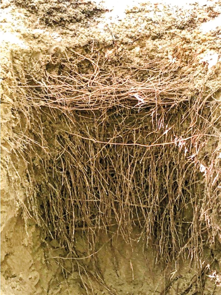 Desarrollo radicular bioestimulado con la aplicación de Humicop (acidos húmicos y fúlvicos) y Razormin (enraizante).
