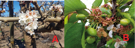 En un ensayo efectuado en la última temporada se evaluaron distintas dosis de calcio floable, correspondiente a óxido de calcio (25% CaO) no complejado con ácidos carboxílicos, aplicadas en un huerto comercial de la variedad Santina injertada sobre Maxma 14, de 5 años de edad. La mitad de la dosis se utilizó en preflor y la otra mitad en poscuaja.