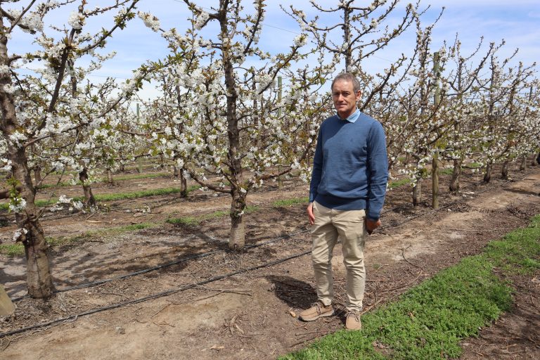 Bruno Margozzini, socio y gerente agrícola de la frutícola que recibió este evento, cuenta con 20 hectáreas de cerezas (además de manzanas, peras, kiwi y uva vinífera, en un terreno de 100 ha), y producen cerezas desde 2012, con las variedades Lapins, Santina y Regina.