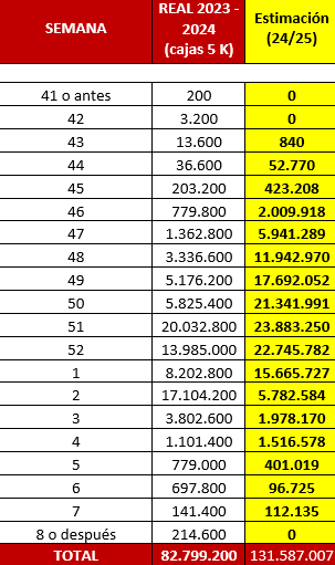 La proyección supera con creces las primeras estimaciones del año, que se encumbraban hasta 115 millones de cajas para los más optimistas.