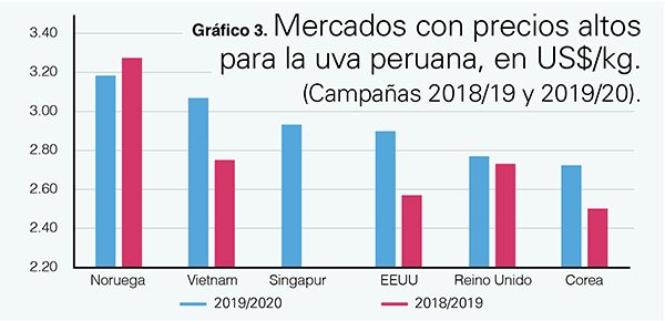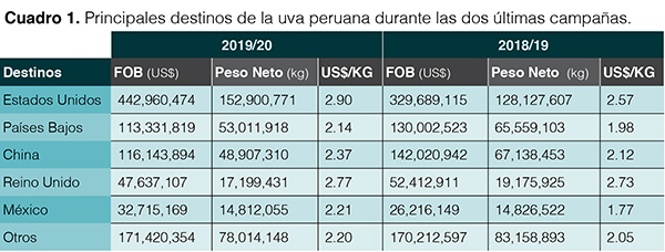 Respecto a la diversificación de mercados, existe el riesgo de una sobreoferta en mercados de destino con menor demanda, pero que ha sido exitosa en las últimas dos temporadas. Esto se debe, principalmente, a que la participación de las exportaciones a destinos diferentes de China ha aumentado por primera vez en cinco temporadas, según el reporte.
