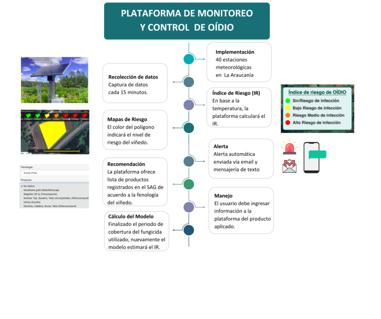 Innovaciones tecnológicas entregadas: se instalaron sensores de humedad de suelo con telemetría en viñedos de 15 beneficiarios, logrando reducir hasta 50 % el riego en Traiguén y Padre las Casas, por ejemplo, sin afectar rendimiento ni calidad (concentración de azúcares, pH, fenoles). Adicionalmente, en distintos viñedos de la región se validó el Modelo de Gubler, implementando una plataforma de alerta temprana para el control de oídio en base a esta herramienta. Esto permitió reducir en promedio un 63% el uso fungicidas, 61,2 % menos agua en aplicaciones foliares, 63,1 % horas de trabajo, 63,2 % diésel y 143,6 kg CO2/ha, sin registrar incidencia de la enfermedad luego del uso de la plataforma de monitoreo de oídio.