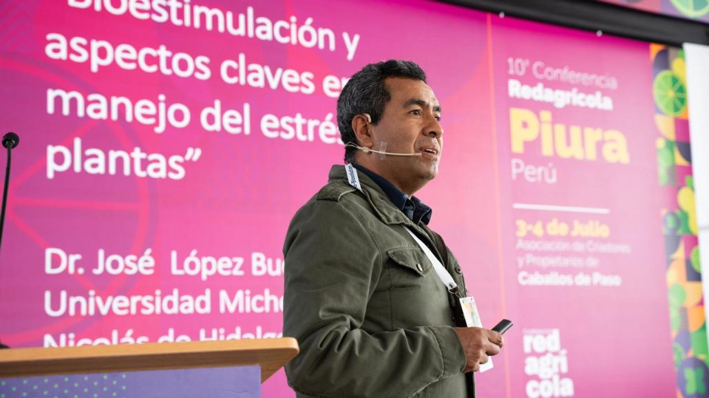 El primer día de la Conferencia Redagrícola Piura comenzó con la exposición del doctor José López Bucio, investigador del Instituto de Investigaciones Químico-Biológicas de la Universidad Michoacana de San Nicolás de Hidalgo de México, quien habló sobre la bioestimulación y algunos aspectos claves en el manejo del estrés en las plantas.