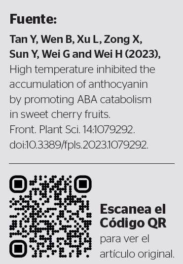 En el estudio, las altas temperaturas inhibieron severamente el incremento de los niveles de ABA en la piel de las cerezas. El ácido abscísico, un regulador positivo clave en la maduración y coloración de frutas no-climatéricas, al parecer juega un rol crucial en el proceso de coloración de la fruta.