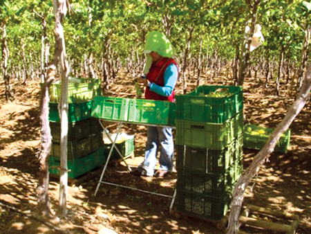 1. Altura de caja y llenado: Según el investigador de la Universidad de Chile, el uso de cajas bajas —en Chile, por ejemplo, los exportadores de uva de mesa usan cajas cosecheras de 17.5 cm— puede causar bayas reventadas. “Si tengo caja baja, cuando coloque otra caja sobre esta, causaré problemas, por ejemplo, de bayas reventadas, que se manifestarán después”, explica y recomienda usar cajas cosecheras altas de 21 cm para evitar que la fruta de una caja quede en contacto con la caja superior cuando se montan unas sobre otras.