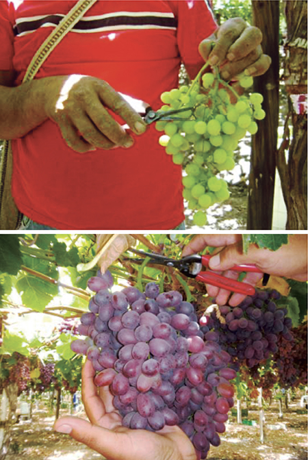 En esta etapa es importante manipular adecuadamente el racimo y proteger la pruina. “El racimo se toma del eje central, desde dónde está colgando. Si se toma de otra manera, el racimo no resiste y comenzará a producirse el desgrane o desgarro pedicelar. También por el tema de la pruina, uno tiene que tratar de manipular lo menos posible el racimo”, destaca Luchsinger, tras anotar que los cosechadores no deben tomar más de un racimo a la vez para no ejercer presión sobre este.