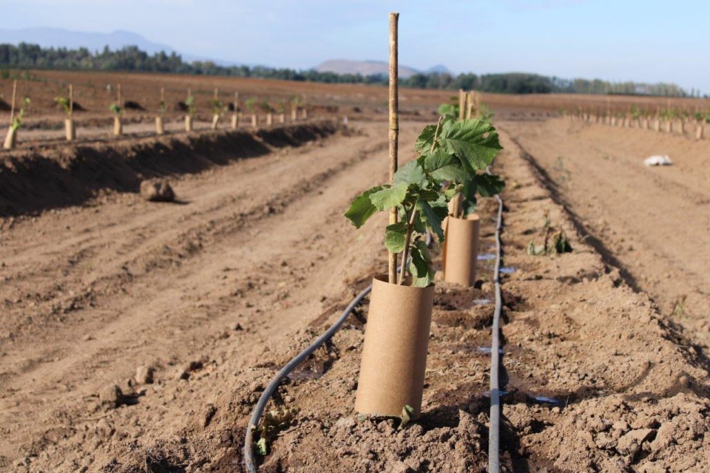 El aporte hídrico tiene que ser cumplido por medio de un sistema de riego tecnificado que, en su mayoría, se trata de goteros, tradicionales o incluso subterráneos. “Actualmente, estamos probando esas mismas líneas con goteros, pero subterráneos. Son goteros especiales y es un sistema que tiene muchas ventajas, como el mejor aprovechamiento del agua, la entrega directa de nutrientes, control de la humedad superficial, un mejor control de la humedad sobre la fruta y, sobre todo, el aprovechamiento hídrico, que es un tema en el cual debemos meternos porque el avellano tiene una huella hídrica bastante alta. Entonces estamos trabajando en diferentes aristas para reducir la carga hídrica”, indica Reyes.