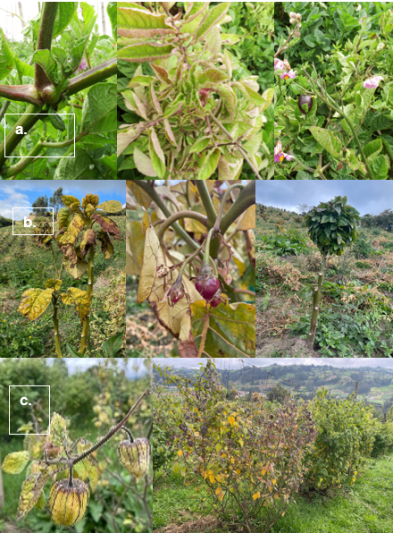 La Punta Morada de la Papa es una enfermedad que genera alteraciones como: disminución de la capacidad fotosintética, afectar el transporte de nutrientes y reservas, malformación y aborto de flores y frutos, promueve cambios en el crecimiento de las plantas de la familia de las solanáceas. Los principales cultivos afectados en Colombia son: papa (Solanum tuberosum L.), tomate de árbol (Solanum betaceum (Cav)), uchuva (Physalis peruviana L.), tomate de mesa (Solanum lycopersicum L.) y ají (Capsicum annuum L.). La enfermedad es transmitida horizontalmente, de plantas enfermas a plantas sanas, por el insecto vector. Verticalmente, se transmite por el uso de tubérculos semilla que están infectados por los patógenos (Naspud et al., 2023).