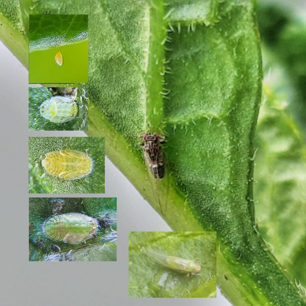 Monitoree el cultivo: realice inspecciones semanales para detectar el insecto o síntomas asociados a la enfermedad. Preste especial atención al envés de las hojas, donde se pueden observar huevos, ninfas y adultos de psílido de la papa. Además, revise las plantas cercanas como uchuva, ají, tomate de mesa, tomate de árbol y arvenses de la familia de las solanáceas como la yerbamora, ya que también pueden ser afectadas por el complejo PMP y ser hospedantes del insecto vector.