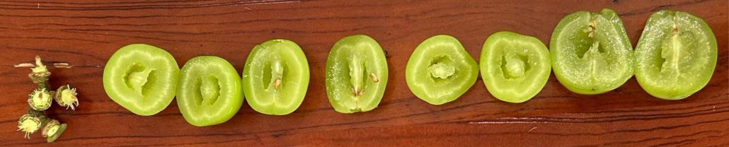 La más importante, la que ha tenido un mayor crecimiento, sin duda alguna, es la Shine Muscat, dice. Se trata de una variedad originaria de Japón, que comenzó a cultivarse en Yunnan, de donde se extendió al resto del país. Es una uva de color verde muy vivo, de pulpa firme y jugosa. Aunque sus comercializadores la describen como una uva sin semilla, Óscar Salgado –que la ha visto y la ha fotografiado en los propios mercados de ese país– asegura que sí tiene semilla.