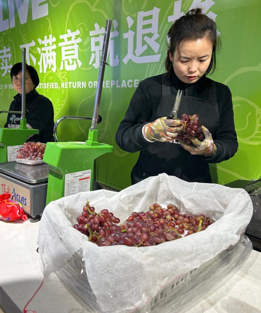 Gracias a estas nuevas técnicas de poscosecha, la fruta de esta variedad puede llegar a comercializarse tan tarde como en el Año Nuevo Chino (entre finales de enero e inicios de febrero). Salgado ha tomado fotografías de racimos de Shine Muscat cosechados en octubre del año 2023 que estaban en exhibición en los mercados de Shanghai el 24 de enero de este año.