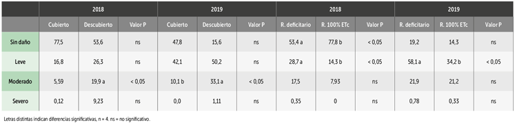 –No hemos tenido problemas de enfermedades –responde Zúñiga–, solo algunas muertes de plantas quebradas por la máquina y otras por fusarium (probablemente por daños mecánicos). Sin embargo, esto ha resultado irrelevante en la producción. Además, dejando sin podar los dos árboles aledaños, en un par de temporadas la muralla frutal puede cubrir casi en su totalidad el espacio que queda debido a la pérdida de un ciruelo. Por otra parte, al mantener un seto delgado, de 80 cm, las aplicaciones foliares logran mejor mojamiento, requieren un menor volumen de agua/ha (500 a 750 L/ha), además de sumarse a una excelente aireación y luminosidad. No se ha presentado cáncer bacterial.