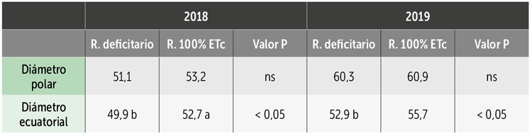 Usando el portainjerto de bajo vigor Rootpac-20, de Agromillora (50% del vigor de Mariana 2624), se establecieron 1.905 plantas por hectárea a una distancia de 3,5 x 1,5 metros.