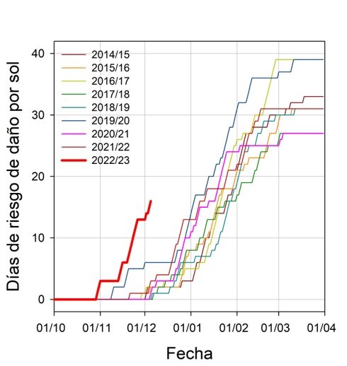 Asimismo, la advección podría disminuirse con la instalación de cortinas de viento que frenen su efecto negativo. “Es un trabajo que hay que ir desarrollando, porque necesariamente hay que medir el efecto que tienen sobre la advección”, precisa y advierte que los productores deben estar preparados para una disponibilidad de agua incluso menor por una serie de factores, por ejemplo, climáticos, pero también por una mayor necesidad de otros sectores de la economía.