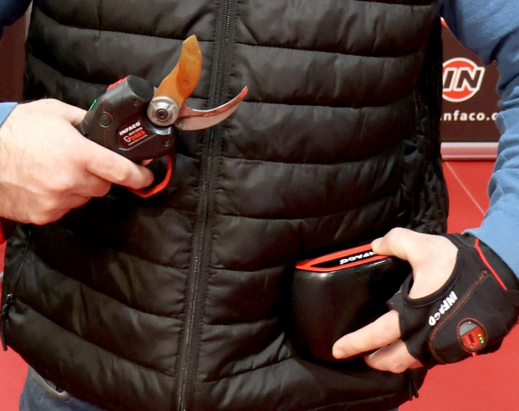 Tijera podadora automática de alta seguridad para el usuario. El dispositivo funciona anticipándose al peligro. Un receptor en la tijera recibe la señal del guante, que debe usarse en la mano opuesta, y gatilla una burbuja de seguridad en torno a la cabeza de corte: cuando detecta un acercamiento peligroso las hojas se abren instantáneamente.