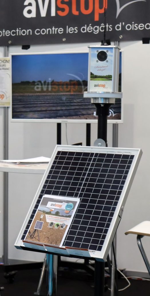 Una cámara de alta definición conectada a un algoritmo de inteligencia artificial identifica la presencia de pájaros en el terreno y transmite la información a un ahuyentador. El detector puede cubrir hasta 12 hectáreas y es posible conectarlo a ahuyentadores de otros fabricantes.