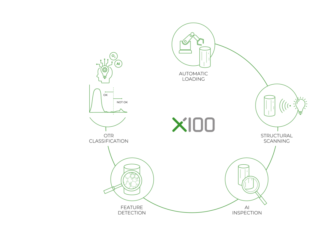 Sistema para inspeccionar tapones de corcho natural, individualmente pero a escala industrial, analizando su estructura interna. Identifica y elimina aquellos cuya tasa de transferencia de oxígeno (O2) resulta muy elevada, lo cual garantiza la consistencia de una botella a otra. Su precisión permite proteger la calidad en vinos de alta gama.