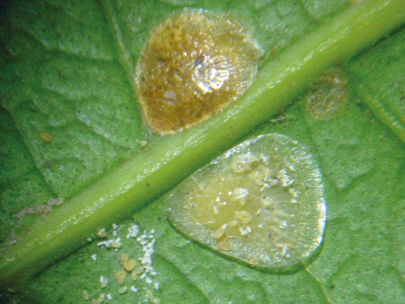 Adicionalmente los resultados de esta experiencia demostraron que EXIREL® es altamente efectivo en el control de Naupactus cervinus reduciendo la abundancia de adultos, observándose diferencias significativas respecto al testigo sin aplicación y demostrando ser equivalente al estándar comercial utilizado, resultados se presentan en la figura N°2. Por otra parte, EXIREL® presenta una efectividad destacada sobre lepidópteros, en el caso de los cítricos se han observado ataque de Proeulia sp y ocasionalmente por la polilla del nogal, Apomyelois ceratoniae.