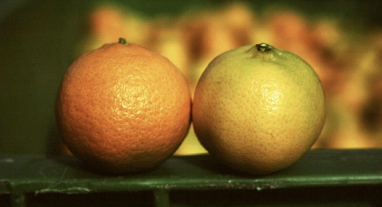 COLOR DE LA FRUTA En el caso de los cítricos dulces, el color externo resulta muy importante como componente de la calidad. La primera definición del color es genética: hay variedades de mejor color que otras en forma natural. Si bien la coloración exterior no se correlaciona con la calidad interna, constituye un factor relevante al momento de la compra. El tinte de la fruta se relaciona con la alternancia térmica entre el día y la noche; mientras mayor sea la alternancia, más intensa va a ser la tonalidad anaranjada.