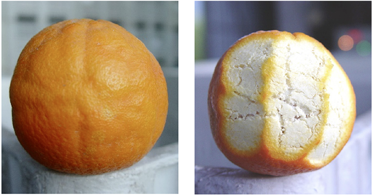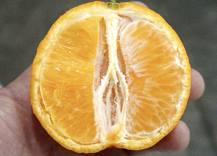 PRESENCIA DE DESÓRDENES FISIOLÓGICOS Los desórdenes fisiológicos corresponden a problemas cuyas causas no están del todo claras. En muchos casos se originan en causas multifactoriales que generan la presencia o no de un desorden. Quizás uno de los más comunes es el creassing o clareta en el caso de las naranjas. Hay años en que su presencia puede ser una verdadera complicación para los productores. Los factores más comúnmente relacionados a la aparición de creassing son: