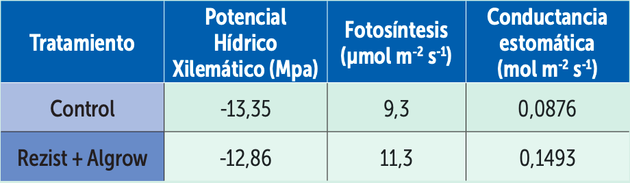 ReZist: Bioestimulante que activa mecanismos de tolerancia al estrés por altas temperaturas y déficit hídrico, promoviendo la activación de enzimas antioxidantes y acumulación de metabolitos que permiten mantener un adecuado potencial osmótico en la planta, manteniendo una tasa metabólica más alta. Al emplear la estrategia Stoller podremos observar una mejora en el estatus hídrico, fotosíntesis y conductancia estomática (Tabla 1 y Figura 2), permitiendo que la planta pueda continuar sus procesos en un ambiente más resiliente y con una carga de estrés menor. Como grupo Stoller estamos comprometidos con seguir generando, validando e implementando soluciones para las problemáticas de la producción agrícola a nivel mundial.