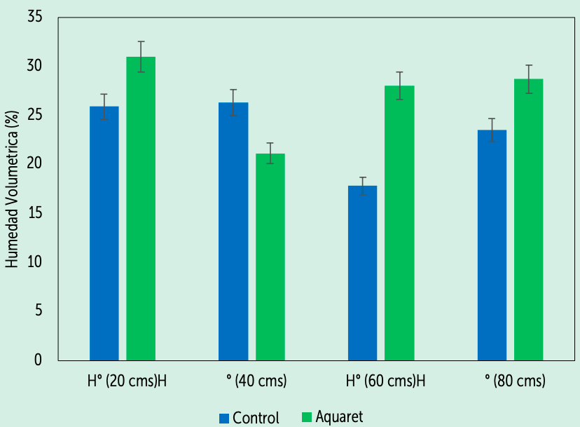 AquaRet: Polímero adyuvante formulado para disminuir la evaporación del agua y conservar la humedad del perfil de suelo por más tiempo, manteniendo el estado hídrico de la planta mejor entre cada evento de riego.