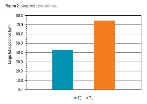un mayor potencial productivo, ya que existe una estricta relación entre el número de semillas y el calibre de la fruta. Además, el CIM ha evaluado el efecto de las aplicaciones de Ecklonia sobre el polen, observando que aumentan significativamente la germinación (figura 1) y la elongación del tubo polínico (figura 2).
