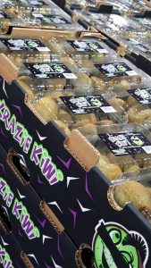 En cajas de diferente peso, en bandeja, en clamshell… La fruta se va procesando de acuerdo a las exigencias de cada mercado. Sin embargo, antes de llegar a la mesa de embalaje, la fruta pasó por una cadena de embalaje que incluye el vaciado, despelado, fumigación, calibración y selección de la fruta.