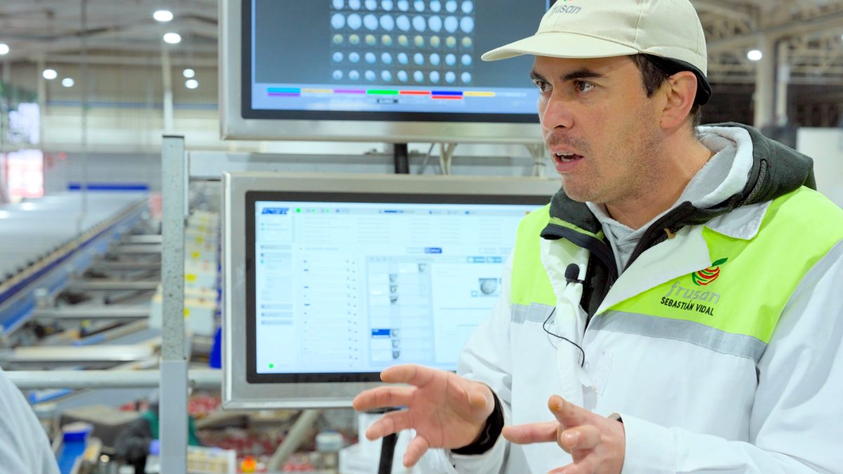“El kiwi lo vamos sacando de acuerdo al instructivo de embalaje que nos envía el área comercial. Vamos procesando y embalando la fruta de acuerdo a los diferentes mercados que nos van pidiendo”, dice Sebastián Vidal, supervisor de Calidad de la Planta Chimbarongo de Frusan, sobre un proceso que concluye con la salida diaria de un promedio de tres camiones.