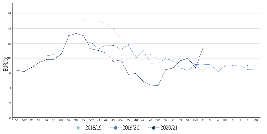 -Si en circunstancias de restricción hídrica se va a riegos cortos y no se tiene cuidado en evitar la evaporación, por ejemplo al no usar mulch, gran parte del agua de los riegos cortos se va a evaporar. Es razonable dar riegos más largos para meter más agua en el perfil de suelo, aprovechando lo mejor posible la capacidad de estanque del mismo. Eso se puede hacer con el apoyo de algún sistema para medir humedad de suelo, ya sea calicata, barreno, sondas de capacitancia u otro; lo que se tenga disponible. La idea general es que el agua penetre más en el suelo para que quede en el perfil. En algunos trabajos que hicimos vimos que si se riega de manera más frecuente versus riegos más distanciados, aplicando las mismas cantidades de agua, disminuye más rápidamente el agua en el perfil de suelo en los riegos más frecuentes que en los riegos más distanciados. Eso, al menos en parte, es debido a un componente de evaporación. El agricultor se puede hacer la ilusión de que está mojando, pero el agua se perderá muy rápido. Mientras más frecuente se haga, más agua será la que se evapore.