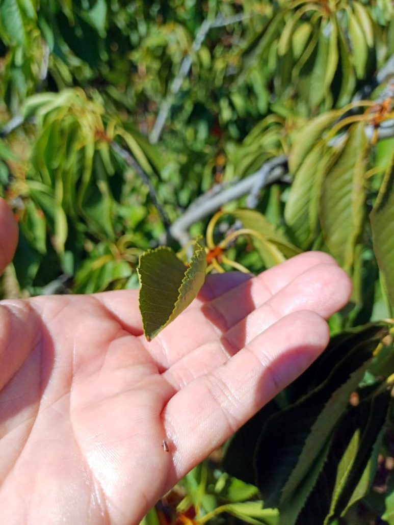 Foto 1. El fenómeno conocido como “pasma” hizo sospechar que los cerezos estaban sufriendo un estrés hídrico moderado o severo.