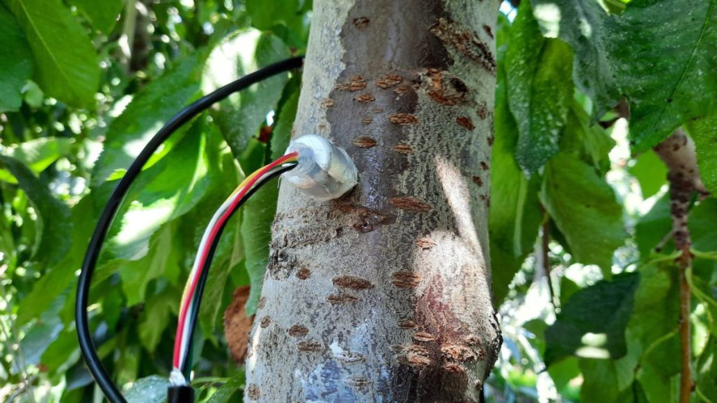 El microtensiómetro de planta es actualmente uno de los equipos más sofisticados, pudiendo proveer de mediciones de potencial hídrico de tallo tan precisas como las obtenidas con la cámara de presión (Lakso et al., 2021). Su mayor ventaja reside en la capacidad de medir en tiempo real y de manera continua, permitiendo monitorear la severidad del estrés hídrico todos los días y en todo momento (Calderón-Orellana y Olivos, 2024). En la actualidad, una de sus mayores desventajas es la falta de representatividad, pues debido a su costo se hace difícil contar con varias estaciones de monitoreo dentro de un cuartel o de un huerto. Este problema se parece al de las estaciones de medición de la humedad de suelo, en donde se asume que el suelo asociado a una o pocas plantas muestreadas representan la condición hídrica del cuartel o del huerto completo.