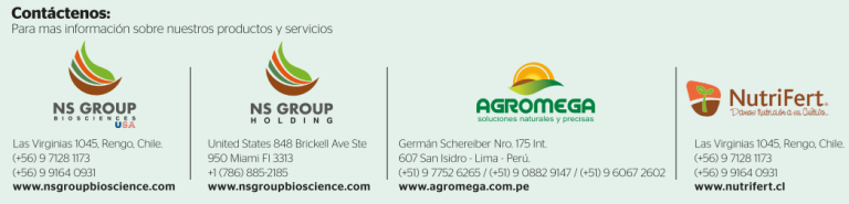 Con una sólida presencia en el mercado chileno y una creciente expansión en América Latina y los Estados Unidos, NS Group Holding se ha consolidado como un actor clave en la industria agrícola. A través de sus empresas asociadas, Nutrifert Chile, Agromega Perú y NS Group Biosciences LLC en EE. UU., la compañía ha establecido una red de colaboración que le permite ofrecer productos de alta calidad a clientes en todo el mundo.