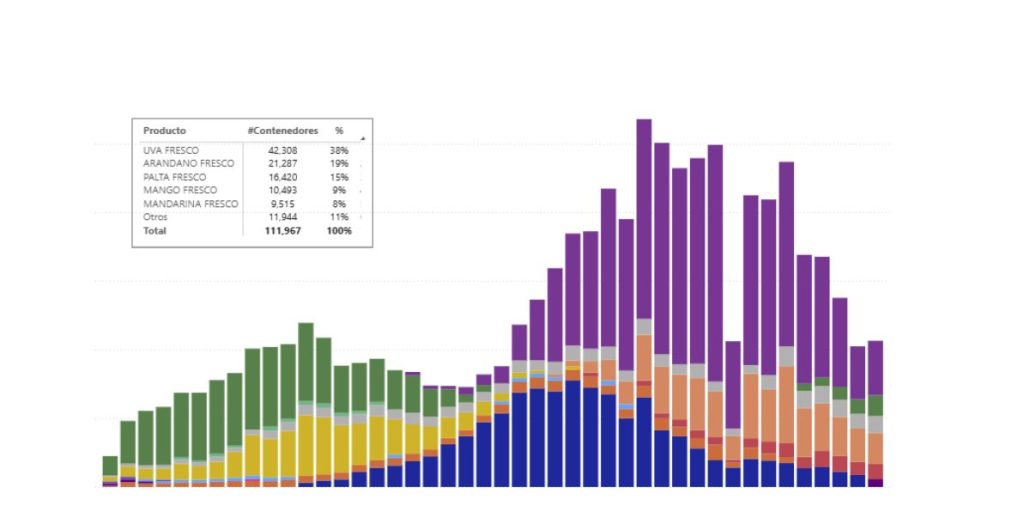 Sí, justo ahora. En arándano estamos prácticamente en el punto más alto de la temporada, con entre 55% y 60% de la campaña ya avanzada. Desde la semana 39 venimos con volúmenes muy fuertes, cerca de 20 millones de kilos por semana, y así seguiremos al menos una semana más antes de empezar a bajar gradualmente. En paralelo tenemos la campaña de uva de mesa, que empezó en octubre con las exportaciones desde el norte. La proyección es que se exporten 86,1 millones de cajas de 8,2 kg, un 4% más que la campaña pasada.