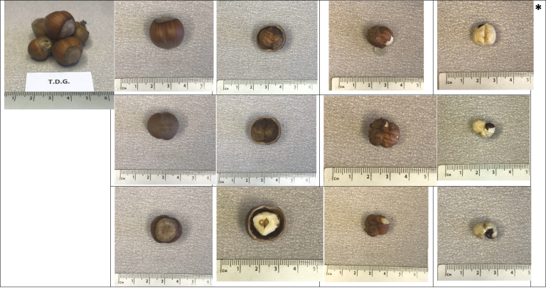 Las variedades entregadas fueron 2 selecciones de Tonda Gentile della Langhe (TGL), principal variedad cultivada en la región de Piemonte, al norte de Italia. Cabe destacar que esta variedad es altamente apreciada por la industria, pues tiene semillas esféricas de color blanco marfil, con buen desprendimiento del perisperma, buen aroma, y rendimiento al descascarado del 45-50%. Sus partidas de fruta son muy homogéneas, de cáscara delgada y con un perisperma de espesor reducido, parámetro de calidad que es importante para el descascarado y el rendimiento industrial. Además, una vez tostada, puede ser fácilmente pelada, atributo de carácter genético, por el cual TGL se diferencia de todos los demás cultivares. Sumado a lo anterior, se indica que tiene buena resistencia a la rotura, debido a su forma y a la presencia de una cavidad interna poco acentuada. Todo lo anterior determina que dicha variedad sea considerada de mejor calidad industrial a nivel mundial (Ellena y otros, 2013, Ellena; 2018).