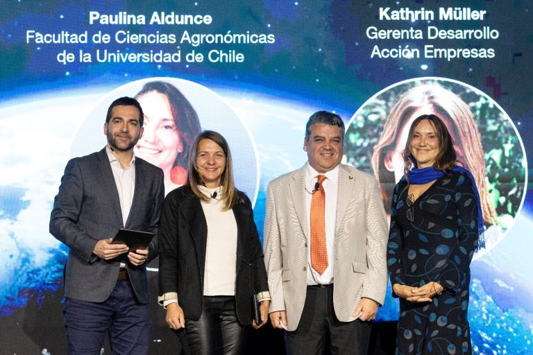 A continuación, se realizaron dos paneles de discusión que fueron moderados por el periodista Nicolás Paut. En el primer espacio participó Rodrigo Sotomayor, jefe División Subdirección de Operaciones del Servicio Agrícola y Ganadero (SAG); Paulina Aldunce, investigadora y la única chilena integrante del Panel Intergubernamental sobre el Cambio Climático (IPCC), y Kathrin Müller, gerenta de Desarrollo de Acción Empresas. Los panelistas conversaron acerca de las transformaciones necesarias para el futuro desde una mirada social, medioambiental y económica.