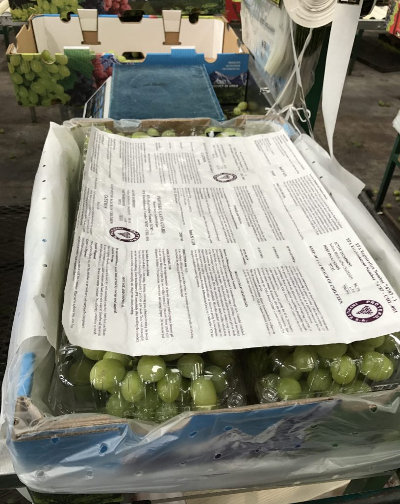 Con el ‘bottom pad’ se logra una concentración más homogénea que alcanza hasta el fondo de la caja, la que con el generador superior por sí solo no se consigue. Este efecto es más notorio luego de 15 a 20 días desde el embalaje de la uva.
