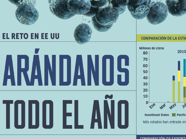 Las fresas eran las reinas en EE UU. Sin embargo, la disponibilidad de arándanos frescos se ha expandido a un ritmo más rápido en ese mercado. Es por ello que la producción e importación ha crecido rápidamente para satisfacer la demanda. Revisa la infografía aquí