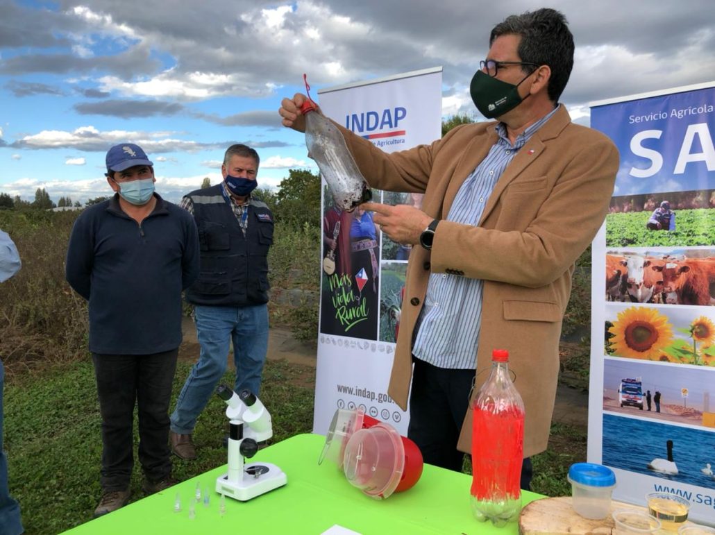 Con el fin de monitorear y controlar la plaga de la mosca Drosophila Suzukii, en la localidad de Retiro, se entregaron 500 nuevas trampas a la Red de Alerta Temprana de Enfermedades y Plagas de la región del Maule. Estos señuelos se suman a otros 250 que se entregarán entre los agricultores de la zona. Además, técnicos del Servicio Agrícola y Ganadero (SAG) explicaron la manera correcta de instalar las trampas en distintas zonas de un predio. En total son 750 trampas que serán distribuidas en distintas comunas de la región del Maule, entre ellas, Retiro y Longaví donde se concentran los pequeños productores de berries. “Es importante que los propios productores realicen prácticas culturales adecuadas; no dejar la fruta en las matas, hacer limpieza, aplicar los insecticidas recomendados y avanzar en riego tecnificado, porque entre todos debemos controlar esta plaga”, dijo José Ignacio Pinochet. La Red de Alerta Temprana de Enfermedades y Plagas está integrada por el SAG, el Instituto de Investigaciones Agropecuarias (INIA) y el Instituto de Desarrollo Agropecuario (Indap) y es coordinada por la Seremi de Agricultura de la región del Maule. Está formada por más de 200 extensionistas que capacitan a los productores en acciones orientadas a prevenir la presencia del insecto o mitigar su impacto en cultivos de frambueso y arándano. “Hago un llamado a los agricultores que han sido afectados por esta plaga y por otras, que se acerquen a la Seremi de Agricultura, porque incluso en pandemia, seguiremos realizando capacitaciones”, dijo Luis Verdejo, Seremi de Agricultura. El objetivo de la Red es apoyar a los agricultores en la detección de enfermedades y plagas en sus primeros estadios de desarrollo, identificar y confirmar su presencia, para luego implementar y transferir estrategias de apoyo para su contener y frenar su avance así como también control su aparición. El riesgo de estas plagas es alto en los principales rubros de la pequeña agricultura de la región del Maule: los frutales menores y las hortalizas.