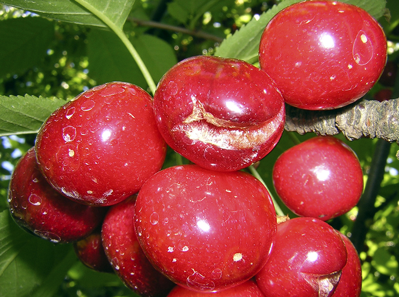 Dr. Richard M. Bastías. Laboratorio de Fruticultura – Facultad de Agronomía, Universidad de Concepción. Investigador – Programa Tecnológico CORFO Centro Fruticultura Sur. Ante el desarrollo de partiduras, ¿cuáles son los modelos que explican las causas de este problema en cerezas? Si bien es cierto la incidencia de partidura en cerezas se asocia a la presencia de lluvias en periodos cercanos a la cosecha, el origen de este daño no necesariamente puede explicarse por ese único factor. De hecho, los avances obtenidos a la fecha, realizando trabajos de investigación, demuestran que existen cuatro modelos que explicarían el por qué la cereza se agrieta frente a eventos de lluvia y que involucra otros factores ambientales, tales como el contenido de agua en el suelo y la variación de la temperatura del aire antes o durante el desarrollo del daño (Figura 1). El modelo de origen de partidura más difundido es aquel determinado por la absorción directa del agua por parte del fruto. Este modelo establece que el daño se origina por el ingreso del agua de lluvia a través de la epidermis del fruto, incrementando el volumen de éste en un grado (punto crítico) en que la epidermis es incapaz de soportar la presión interna del fruto, destruyendo las vacuolas, con el consecuente colapso de las células epidérmicas y de los componentes de la pared celular, provocando así la partidura (Figura 1). Estudios sobre cinética de la partidura realizados en Chile han permitido corroborar en parte este modelo. Así, cuando los frutos de distintos cultivares fueron sometidos al método de inmersión en agua destilada y durante diferentes estados de desarrollo del fruto, permitieron evidenciar daño de partidura a partir de aproximadamente los 50 días después de plena flor (DDPF) para cultivares de cosecha temprana a media estación como Bing, Van y Stella; y partir de los 70 DDPF para cultivares de cosecha más tardía como Kordia (Figura 2). Esta diferencia en el momento de inducción de partidura entre los cultivares debiera estar relacionado con el estado de maduración de la fruta, y principalmente con el contenido de sólidos solubles (azúcares) que determina el diferencial de potencial osmótico entre el contenido de zumo celular y el agua exterior, y que finalmente determina la fuerza motriz que mueve el agua hacia el interior de los frutos. No obstante, a la fecha no se ha podido demostrar a ciencia cierta que el contenido de azúcares es el factor determinante en las diferencias de incidencia de partidura entre cultivares. De hecho, se ha demostrado que las diferencias de susceptibilidad entre cultivares no tiene relación únicamente con la concentración de azúcares en frutos y su potencial osmótico, sino que también con el patrón de crecimiento y expansión del fruto durante su desarrollo en el árbol y que inciden en cambios estructurales y funcionales de la cutícula del fruto. La cutícula del fruto está compuesta por la cutina y distintos tipos de ácidos grasos. Durante las distintas fases de crecimiento de la cereza en el árbol, la deposición de la masa de cutícula en el fruto disminuye considerablemente, mientras que la expansión de la masa del fruto se incrementa a una mayor tasa. Esta condición conlleva a que debido a la tensión que se genera se desarrollan micro fracturas en la cutícula o ‘micro-cracking’ que solo se pueden apreciar a nivel microscópico. Aun cuando la presencia de ‘micro-cracking’ no compromete a las capas celulares subyacentes de la epidermis o de la hipodermis de la cereza, sí se ha demostrado que la incidencia de ‘micro-cracking’ predispone al desarrollo de partiduras durante la fase III del desarrollo del fruto (Figura 2). El desarrollo de ‘micro-cracking’ es el segundo modelo que explica las causas de inducción de partiduras en cerezas (Figura 1). Este propone que la presencia de estas minúsculas fracturas de la cutícula aumenta la tasa de absorción localizada de agua, generando el daño individual de células y su esparcimiento a nivel de la epidermis del fruto. Además, investigaciones recientes indicarían que durante este proceso se produce la liberación de ácido málico, compuesto que participa en la extracción de calcio a nivel de la lamela media de la pared celular generando un engrosamiento y el posterior debilitamiento de las células de la epidermis e hipodermis, hasta alcanzar el daño visual de agrietamiento observado en cerezas con partiduras. Si bien es cierto el modelo de ‘micro-cracking’ es uno de los más aceptados en cuanto al origen fisiológico del daño de partiduras por lluvias en cerezas, este no permite explicar el por qué, por ejemplo, existe igualmente daño por partiduras en ausencia de agua lluvia en la superficie de los frutos. Así, se ha encontrado que en huertos con coberturas protectoras de lluvias (techos), un porcentaje no menor de la fruta bajo estas coberturas sigue manifestando este daño, especialmente en la zona lateral del fruto (Figura 3). En este contexto es que en el último periodo se ha propuesto un tercer modelo que explicaría la inducción de daño por partiduras y el que se basa en el flujo de agua desde las raíces y a través del sistema vascular del fruto, contribuyendo directamente al desarrollo de partiduras (principalmente de tipo lateral) o indirectamente al incremento del volumen de los frutos y debilitamiento de las células de la epidermis (Figura 1), lo que demuestra la importancia que podría tener el cambio en el contenido de humedad del suelo sobre el desarrollo de este desorden. Los tres modelos anteriormente descritos intentan explicar el origen del daño de partiduras en cerezas sobre la base de la relación suelo-agua-planta-fruto, pero no consideran el rol que pueden estar jugando otras variables ambientales como la temperatura del aire. La experiencia local ha mostrado que la severidad de este daño puede variar dependiendo de las con