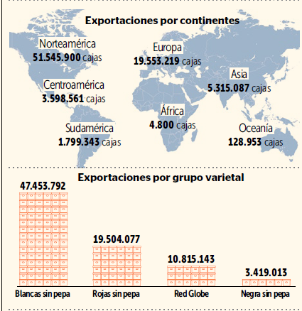 Las uvas blancas sin semilla continúan liderando la preferencia internacional con Sweet Globe, encabezando las exportaciones