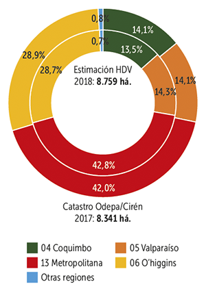 Hoy en día existe consenso que los nuevos escenarios climáticos afectarán de diferente forma e intensidad a las regiones agrícolas de Chile. Por ejemplo, en la región de O’Higgins se proyecta un aumento de temperatura de entre 2,7 y 3ºC, y una reducción de precipitación de 20 a 25% al año 2040. Sin embargo, estos cambios no serán homogéneos dentro de la región, por lo que es muy útil conocer los lugares más expuestos o donde los manejos de adaptación puedan ser similares. La zonificación productiva en un escenario actual considera valores históricos de suelo y clima, pero también permite simular condiciones de escenarios futuros de las variables climáticas, como la temperatura, que es determinante para la fenología de los frutales. La fenología de la floración puede ser usada como bioindicador del cambio de temperatura o para evidenciar el efecto del cambio climático en los frutales en diferentes sectores, redefinir zonas e implementar medidas de adaptación. Un ejemplo de ello es la tendencia a la reducción de la acumulación de horas frío de entre un 21 a 31% entre los años 2010 y 2018 que se ha observado en la región, lo que definitivamente va a reducir la posibilidad de establecer cerezos con altos requerimientos de frío, desplazando este frutal hacia el sur. También podemos identificar zonas homogéneas y tempranas para el establecimiento de cerezos de bajo requerimiento de frío y proyectar la reconversión frutícola basándose en los escenarios de cambio climático.